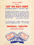 Let’ Em Eat Cake opened on October 21, 1933 at the Imperial and ran 90 performances.